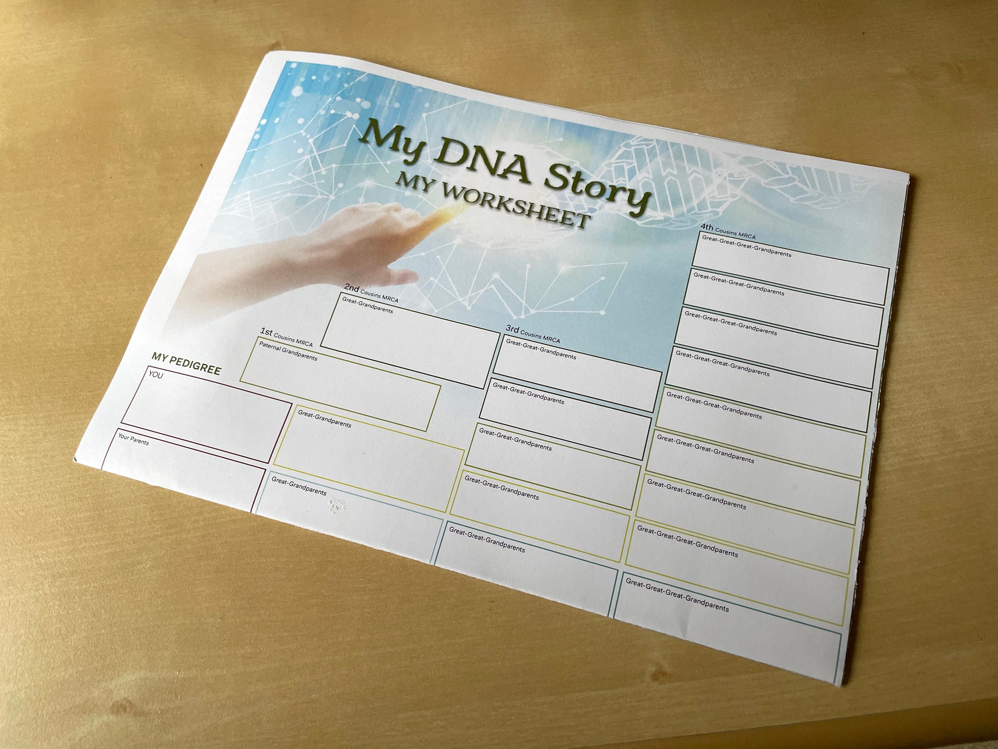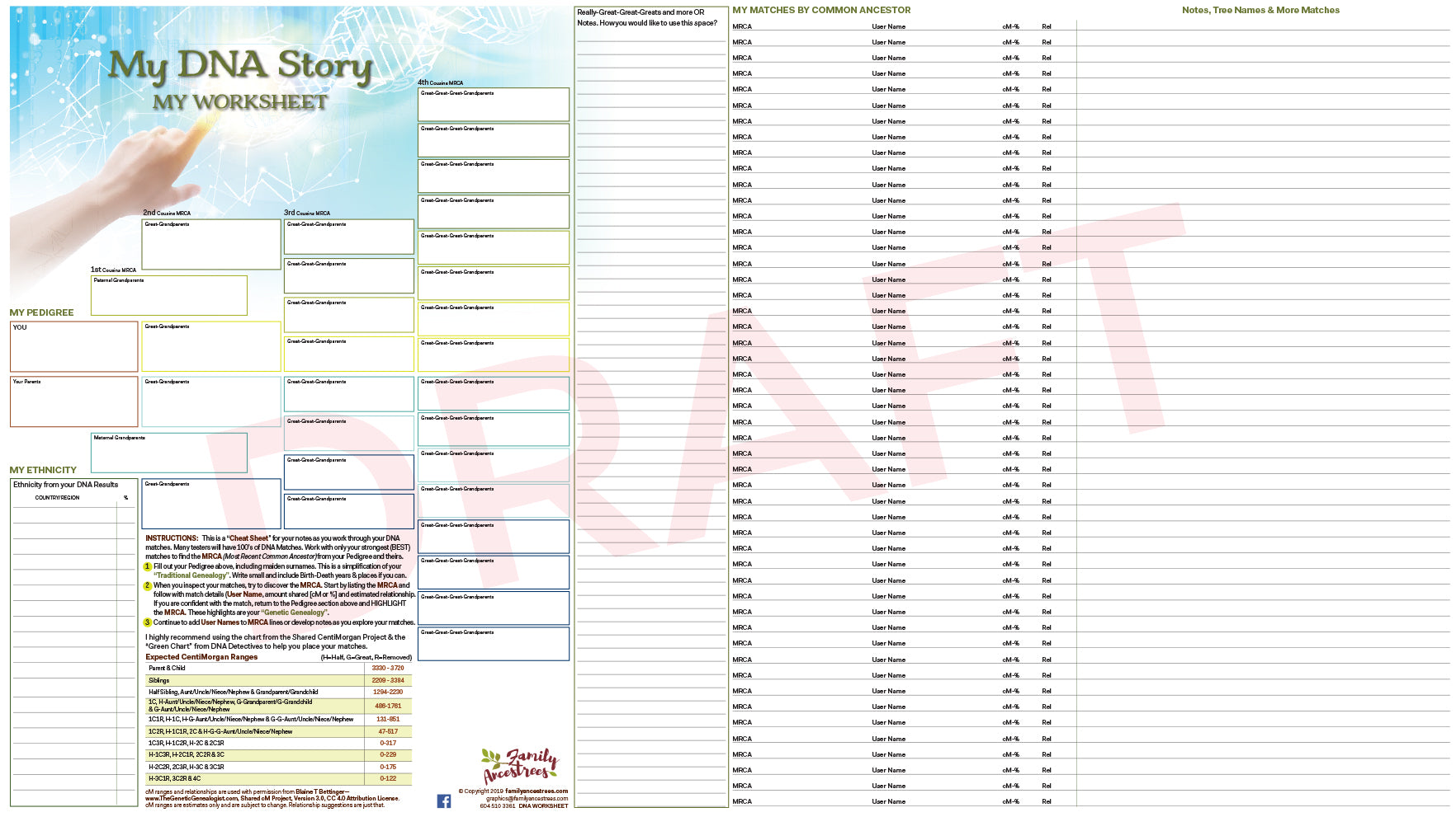 A super way to track the direct-line ancestors that you've proved with DNA. This comes folded (10" x 7") and unfolds to 25" x 14", printed on high-grade paper.
